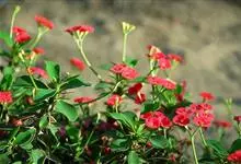 虎刺梅:别称铁海棠,是蔓生灌木植物。茎多分枝,长60-100厘米,直径5-10毫米,具纵棱,密生硬而尖的锥状刺,刺长1-1.5厘米,直径0.5-1.0 毫米,常呈3-5列排列于棱脊上,呈旋转。叶互生…全部>>