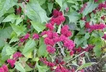 千穗谷一年生草本;茎绿色或紫红色,分枝,无毛或上部微有柔毛。叶片菱状卵形或矩圆状披针形,具凸尖,基部楔形,无毛,上面常带紫色;叶柄无毛。圆锥花序顶生,直立,圆柱形,不分枝或分枝,由多数穗状花序形成,…全部>>