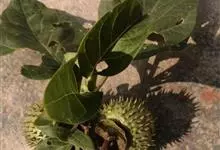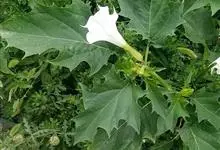 曼陀罗,茄科曼陀罗属一年生大型草本植物,全株光滑。有臭气;叶呈广卯形,边缘具不规则波状浅齿裂;花单生于枝杖间或叶腋,直立,有短梗;花萼是筒状裂片三角形,颜色为白色或淡紫色;果实为蒴果卵状,…全部>>