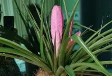 紫花凤梨,是凤梨科铁兰属的多年生草本植物。株高不及30厘米;叶片拱状线形,叶丛族生于短缩茎上,斜出或横生,叶为绿色,基部具有紫褐色彩晕;短穗状花序,总苞片粉红色,呈扇形;小花青紫色,…全部>>