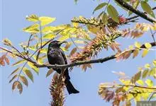黑卷尾是雀形目卷尾科一属,又称铁练甲、铁燕子、铁林哥、羊蹄刺、榨油郎,体长约30厘米全身蓝黑色而具金属光泽,尾长且分叉较深。幼鸟似成鸟,金属光泽弱,下腹部具近白色的横纹。虹膜暗红色,嘴黑色,脚黑色。…全部>>