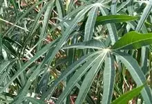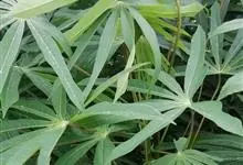 木薯,为大戟科木薯属的一种直立灌木,又名木番薯、树薯。木薯高1.5-3米;块根圆柱状。叶纸质,轮廓近圆形;裂片倒披针形至狭椭圆形;托叶三角状披针形。圆锥花序顶生或腋生,花萼带紫红色且有白粉霜。…全部>>