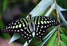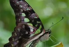 青带凤蝶Graphium sarpedon ,又名青凤蝶,是最普遍的中型凤蝶,飞行速度很快。青带凤蝶的翅膀中央有许多浅蓝色的斑点,很整齐地排列成一条直线。这些斑点由上而下逐渐变大,就像一条青色的带子。全部>>