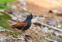 凤头鹀:属小型鸣禽,体重21-31克,体长134-175毫米。以头顶的细长羽冠为特征,雄鸟全身几乎均为黑色具蓝色光泽,两翅和尾以及尾上覆羽栗红色。雌鸟具短的褐色羽冠,上体暗橄榄褐色,…全部>>