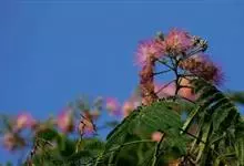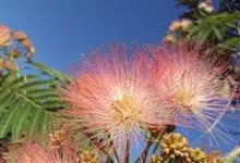 合欢,又名马缨花、绒花树、夜合合等,为豆科合欢属的一种落叶乔木。合欢的树高可达16米,人工特别养护的可达30米,树冠开展;二回羽状复叶,…全部>>