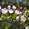 湖北海棠 Rehder)是蔷薇科苹果属植物,乔木,高达8米;小枝最初有短柔毛,不久脱落,老枝紫色至紫褐色;冬芽卵形,先端急尖,鳞片边缘有疏生短柔毛,暗紫色。果实椭圆形或近球形,直径约1厘米,…全部>>