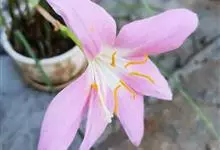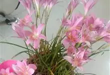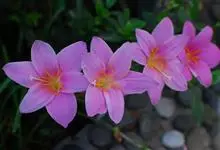 小韭兰学名韭菜莲又名风雨花、菖蒲莲、红玉帘和旱水仙,多年生草本,鳞茎卵球形,基生叶常数枚簇生,线形,扁平,花单生于花茎顶端,下有佛焰苞状总苞,花玫瑰红色或粉红色,蒴果近球形,种子黑色,花期夏秋。韭莲…全部>>