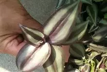 吊竹梅是鸭跖草科紫露草属的多年生草本植物;茎半肉质,柔弱披散至悬垂;叶椭圆形至长圆形,无柄,先端急尖至渐尖,基部鞘状抱茎,叶面紫绿色而杂有银白色,叶背紫色,全缘;花聚生于顶生叶状苞内,…全部>>