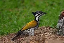三趾啄木鸟,是啄木鸟科、啄木鸟属的小型鸟类,体长20-23厘米,雄鸟头顶金黄色,雌鸟黑色而具白色斑点。眼至耳覆羽黑色,眼后有一条白色纵纹,颊纹白色,颚纹黑色,甚为醒目。枕和后颈黑色,…全部>>