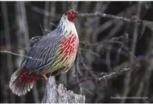红腹角雉属于鸡形目雉科,雄鸟体羽及两翅主要为深栗红色,满布具黑缘的灰色眼状斑,下体灰斑大而色浅。雌鸟上体灰褐色,下体淡黄色,杂以黑、棕、白斑。全部>>