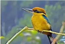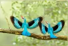 蓝翠鸟:体长17-19厘米,翼展25-29厘米,体重40克。体羽艳丽而具光辉,头、背羽蓝色有光泽,胸腹部是美丽明亮的桔红色或红棕色,翅膀上夹有一些黑色,后颈和喉部有白斑,尾下尖部是斑驳的灰黑色,腿和…全部>>