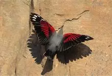 红翅旋壁雀:体重15-23克,体长120-178毫米。是一种体型略小的鸟类。尾短而嘴长,翼具醒目的绯红色斑纹。飞羽黑色,外侧尾羽羽端白色显著,初级飞羽两排白色点斑飞行时成带状。繁殖期雄鸟脸及喉黑色,…全部>>