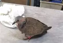 珠颈斑鸠,别名花斑鸠、珍珠鸠、花脖斑鸠、鸪鹪,是鸠鸽科副斑鸠属鸟类。体型中等,体长27~34cm,体重120~205g,雌鸟和雄鸟羽色相似,但雌鸟不如雄鸟羽色亮泽。珠颈斑鸠前额至头顶羽色稍淡,…全部>>