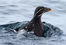 角嘴海雀,是海雀科、角嘴海雀属的中型海鸟,体长32-41厘米,嘴短而粗呈圆锥状、橙色。夏羽上嘴基部有一个三角形的突出物,形状如角。头两侧各有两条由白色丝状饰羽组成的纵带,分别位于眼上和眼下后方的头侧…全部>>