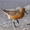 红腹滨鹬,是鹬科、滨鹬属的小型涉禽,体长23-25厘米,嘴较短而直、黑色,脚亦甚短、绿色。体较粗胖。夏季上体灰褐色具黑色中央纹,背具棕栗色和白色斑纹和羽缘,头侧和整个下体栗红色。冬季棕红色消失,…全部>>