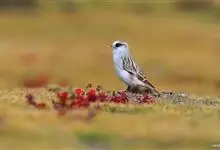 白斑翅雪雀:属典型的高原鸟类,共有7个亚种,体重30-34克,体长142-169毫米,较雪雀属中其他种体型稍大;雄鸟头灰,颏黑,翕和肩富于褐色;翼大部白色;除一对中央尾羽黑色外其余均为白色而具黑色羽端,…全部>>