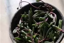 紫玄月是菊科厚敦菊属多年生肉质草本植物。蔓长30-60厘米;茎紫色;叶对生或互生茎上肉质,叶片细圆柱形,中间粗两端细稍弯曲;花序着生于叶腋,头状花序,舌状花黄色,管状花黄色;花期全年。…全部>>