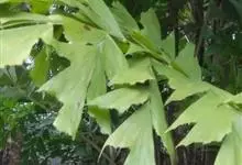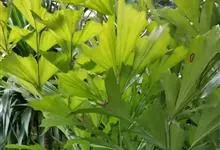 鱼尾葵,棕榈科鱼尾葵属植物。鱼尾葵幼叶近革质,老叶厚革质;羽片互生,罕见顶部的近对生,最上部的羽片大,呈樱形,侧边的羽片小,菱形似鱼尾。外缘笔直,花聚生3朵,花瓣黄色;萼片宽圆形;花药线形,黄色,…全部>>