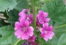 锦葵:二年生或多年生直立草本,高50-90厘米,分枝多,疏被粗毛。叶圆心形或肾形,具5-7圆齿状钝裂片,两面均无毛或仅脉上疏被短糙伏毛。花3-11朵簇生,小苞片3,长圆形疏被柔毛;花紫红色或白色,…全部>>