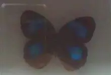 紫斑环蝶是我国云南常见蝶类,其翅膀表面分布着两种类型的鳞片,呈覆瓦状排列,均布于整个翅膀表面。 紫斑环蝶翅展80~90mm,前翅三角形,外缘弧状,后翅近圆形,翅面深褐色,前后翅中室后方有蓝色斑块。…全部>>