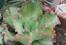 女王花笠,又名扇贝石莲花、女王花舞笠,是景天科拟石莲花属的多肉植物。由美国加利福尼亚州的育种师Dick Wright于1964年培育。特征是呈大波浪状褶皱的红色叶缘和气质高贵的粉紫色调。…全部>>