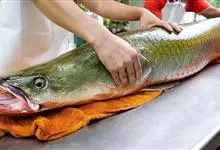 巨骨舌鱼隶属于骨舌鱼科巨骨舌鱼属,亦称巨巴西骨舌鱼或海象鱼。其体长可达2~6米,体重可达100千克。巨骨舌鱼体形修长,头部稍侧扁;无下颌骨,但舌头上有坚固发达的牙齿;鳞片厚重可达6厘米。尾鳍呈圆形,…全部>>