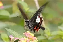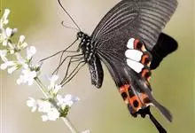玉斑凤蝶Papilio helenus 别名白纹凤蝶,是凤蝶科凤蝶属美凤蝶亚属大型种类。雌雄同型;体翅皆黑色,后翅正面中室外有3个并列的白色斑,亚外缘有1列模糊的新月形红色斑,…全部>>