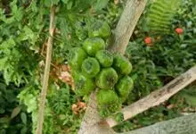 大果榕是桑科榕属的小乔木,株高可达10米;幼枝被柔毛;叶互生,宽卵状心形或近圆形;雄花无梗、匙形、花丝长,雌花生于雌株榕果内,子房白色;榕果簇生于树干基部或老茎短枝上、扁球形或陀螺形,…全部>>