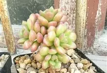 玉米石是景天科、景天属植物。多年生草本多浆植物。植株低矮丛生,多分枝。叶膨大成圆筒形、卵形或近小球形,互生至簇生,长0.6-1.2厘米,宽0.4-0.7厘米,叶端钝圆,亮绿色,肉质,硝带红晕,…全部>>