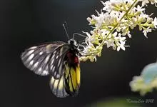 报喜斑粉蝶是粉蝶科斑粉蝶属的一种动物,又名红肩粉蝶、藤粉蝶等。幼虫群集性很强,从同一卵块孵化出的幼虫,幼龄期全部群集在一起取食,高龄幼虫常分散成小群。幼虫群集危害叶片,造成秃枝,严重者可将树吃成光杆,…全部>>