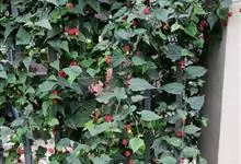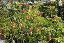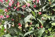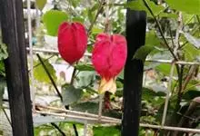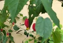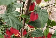 红萼苘麻是锦葵科、苘麻属常绿软木质灌木,叶绿色,长5-10厘米,心形,叶端尖,叶缘有钝锯齿,有时分裂,有细细的叶柄;叶互生,掌状叶脉;花单生于叶腋,具长梗,下垂;花萼红色,半套着大约4厘米长的花瓣,…全部>>
