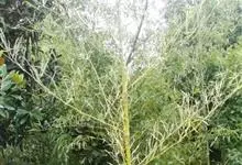 粉单竹是禾本科簕竹属乔木状竹类植物,大型丛生乔木状,竿直立,幼时被白色蜡粉;筝鞘初被白蜡粉及小刺毛,片淡黄绿色,强烈外翻,篷环有棕褐色捐毛;竿分枝高,数枝族生,无毛被蜡粉;叶披针形至线状披针形,…全部>>
