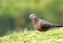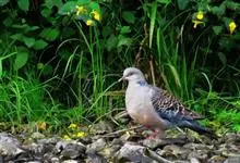 珠颈斑鸠,别名花斑鸠、珍珠鸠、花脖斑鸠、鸪鹪,是鸠鸽科副斑鸠属鸟类。体型中等,体长27~34cm,体重120~205g,雌鸟和雄鸟羽色相似,但雌鸟不如雄鸟羽色亮泽。珠颈斑鸠前额至头顶羽色稍淡,…全部>>