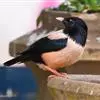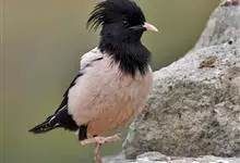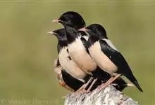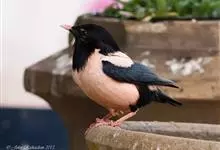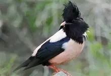 粉红椋鸟:中等体型,成鸟体长19-22厘米,体重60-73克,飞羽、尾羽为亮黑色,雌鸟与雄鸟毛色相似,但较黯淡。形似八哥,但背部及腹部粉红色,故称粉红椋鸟。余羽棕黑,十分可爱。雌鸟图纹相似但较黯淡。…全部>>