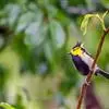 冕雀:共有4个亚种。体长20-21厘米,体重34-49克。具蓬松的黄色长型冠羽。雌鸟似雄鸟,但喉及胸深橄榄黄色,上体沾橄榄色。不会被误认的体大的黄色及黑色山雀。混群栖于原始林及次生林的林冠层,…全部>>