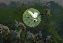 粉红琵鹭:体高87厘米,翼展127厘米,体重1300克,寿命10年。是一种大型涉禽。脚很长,喙长而呈竹片状。成鸟头部光秃及呈绿色,颈部、背部及胸部呈白色,其他的都呈深粉红色。喙呈灰色。雄鸟和雌鸟相似…全部>>