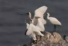 琵鹭,为6种长腿涉禽的统称。主要以虾、蟹、水生昆虫、昆虫幼虫、蠕虫、甲壳类、软体动物、蛙、蝌蚪、蜥蜴、小鱼等小型脊椎动物和无脊椎动物为食,偶尔也吃少量植物性食物。…全部>>