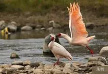朱鹮是鹈形目鹮科朱鹮属的鸟类动物。其雄鸟通体白色,羽干及两翅与尾等均沾染粉红色;颈项上有很多长矛状羽毛,形成羽冠,耸立时非常夺目;嘴长而向下曲,呈黑色,先端朱红,脚的裸露部分亦呈亮红色。雌鸟羽色略同,…全部>>