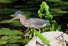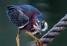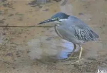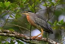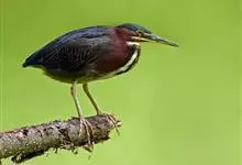 绿鹭:是鹳形目鹭科绿鹭属鸟类。体型小,头顶黑,枕冠亦黑色,上体蝉灰绿色,下体两侧银灰色;前额至后枕及冠羽墨绿色,眼后有一白斑,颊纹黑色;颚纹白色,后颈、颈侧和体侧烟灰色;背部披灰绿色矛状长羽,…全部>>