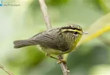 黄喉雀鹛是雀眉科、拟希鹛属小型鸟类,体长11-12厘米。头顶浅黄色具黑色鳞状斑,头顶两侧各有一道黑色侧冠纹,眉纹浅黄色、长而宽阔。上体灰绿色,两翅和尾褐色而具浅黄色窄缘。下体淡黄色。特征明显,…全部>>