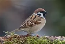 家麻雀:共有13个亚种。是小型鸟类,体长14-16厘米。背栗红色具黑色纵纹,两侧具皮黄色纵纹;颏、喉和上胸黑色,脸颊白色,其余下体白色,翅上具白色带斑。雄鸟与树麻雀的区别在顶冠及尾上覆羽灰色,耳无黑…全部>>