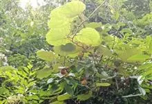 粉背黄栌叶卵圆形,较大,长3.5-10厘米,宽2.5-7.5厘米,无毛,但叶背显著被白粉;叶柄较长,1.5-3.3厘米,…全部>>
