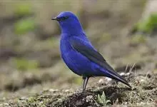 蓝大翅鸲是鹟科、大翅鸲属小型鸟类,体长19-21厘米。两翅尖长。雄鸟通体鲜紫蓝色具金属光泽。两翅和尾黑色。雌鸟上体灰褐色,头、颈、翕具棕白色纵纹,翅上有白色翅斑。虹膜暗褐色,嘴、脚黑色。…全部>>