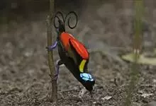 大极乐鸟是极乐鸟属中最大的鸟种。成年雄鸟体长可达到43厘米,雌性可达35厘米。雄鸟的额、颊、喉等墨绿色;头、颈黄色;上体暗赤栗色;腹部葡萄红色,胁部有长饰羽,其基部橙黄,中部黄色,…全部>>