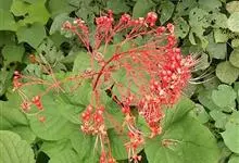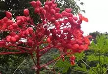 赪桐 Sweet)是唇形科、大青属灌木,高1-4米,叶片圆心形,顶端尖或渐尖,基部心形,边缘有疏短尖齿,表面疏生伏毛,二歧聚伞花序组成顶生,大而开展的圆锥花序,花序的最后侧枝呈总状花序,花萼红色,…全部>>