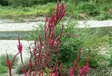 千穗谷一年生草本;茎绿色或紫红色,分枝,无毛或上部微有柔毛。叶片菱状卵形或矩圆状披针形,具凸尖,基部楔形,无毛,上面常带紫色;叶柄无毛。圆锥花序顶生,直立,圆柱形,不分枝或分枝,由多数穗状花序形成,…全部>>