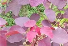 紫锦木是大戟科、大戟属的常绿乔木。叶圆卵形,主脉于两面明显,侧脉数对,边缘全缘,两面红色;花序生于二歧分枝的顶端,总苞阔钟状,裂片呈三角形,边缘具毛,腺体深绿色呈半圆形,…全部>>