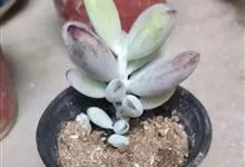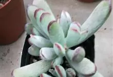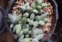 福娘为景天科银波锦属的肉质草本植物。对生的叶片呈短棒状,叶色灰绿,表覆白粉,叶缘外围镶着紫红色,叶片外形多有变化有短圆形、厚厚的方形等不同叶形;花期夏秋。福娘原产于非洲西南部的纳米比亚,…全部>>