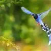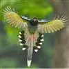 台湾蓝鹊:体长64至65厘米,翼展18至21厘米,尾长约40厘米,尾羽长占了总体长的三分之二。头、脸、颈、喉、胸都是黑色,黄色的眼珠包围黑色的瞳孔,鲜红色的鸟喙、双脚,…全部>>