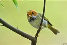 棕脸鹟莺:体长10厘米,是一种色彩亮丽而有特色的莺鸟。头栗色,具黑色侧冠纹。上体绿,腰黄色。下体白,颏及喉杂黑色点斑,上胸沾黄。与栗头鹟莺的区别在头侧栗色,白色眼圈不显著且无翼斑。…全部>>